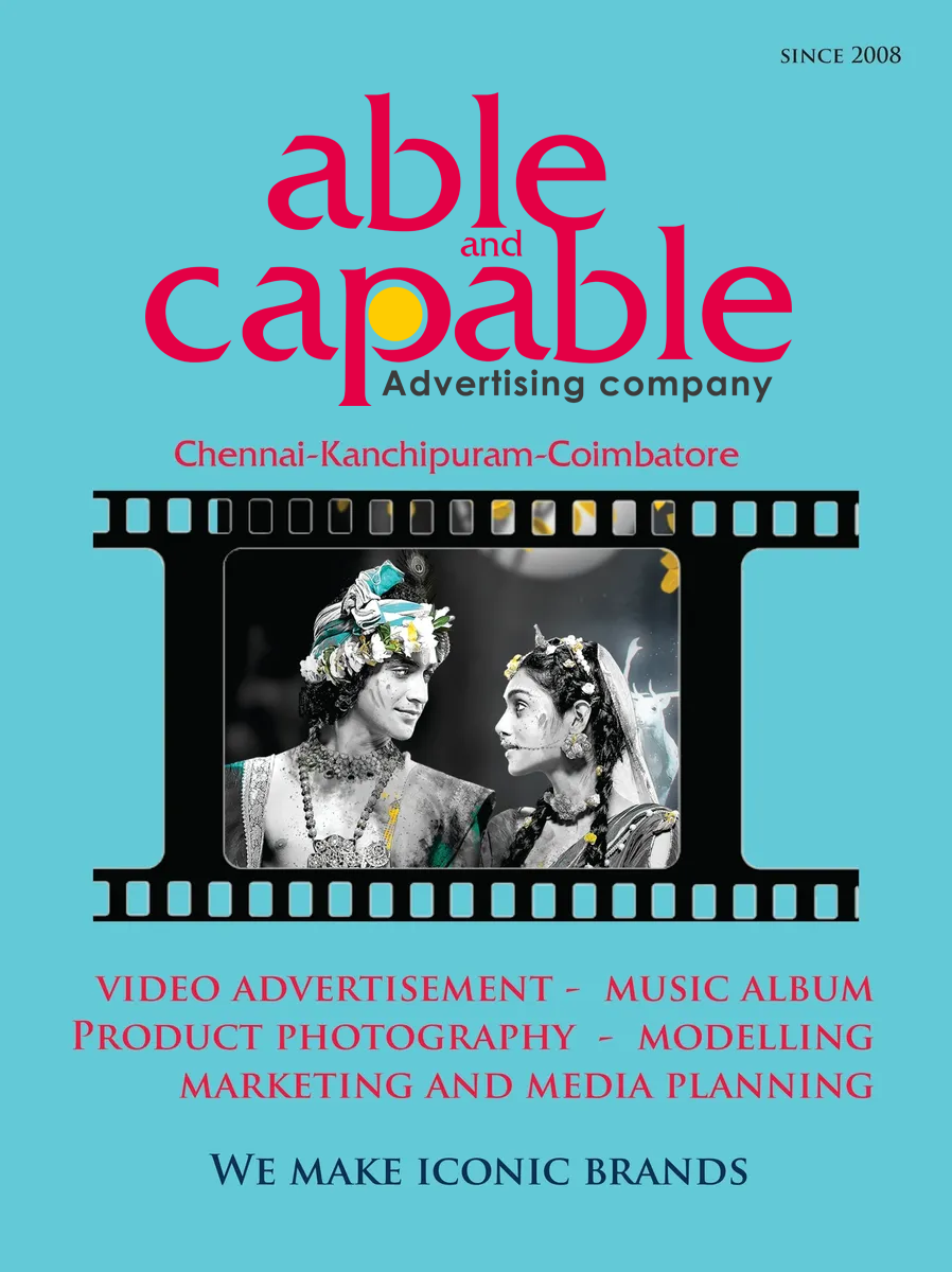 Able and capable is not only a Advertising agency, it’s a full service production company. Able and capable specialized in script preparing according to customers to their customized need. We do an Innovative photography which lead to promote the Brand. The shoot will finalize with the prefect light settings, choice of the Artists, and art of the cinematography with accurate destination that explores the reels. We do an Enthusiastic and trending music with our own identical knowledge to promote the Brands Able and Capable Entertainment come up with the unique creative roles, and also we provide own promoting stuffs in Satellite Television, Radios, Theatrical advertisement, and Digital Media. Able and capable entertainment works for the customer’s customized fulfillment, which enhances to promote their Brands.
